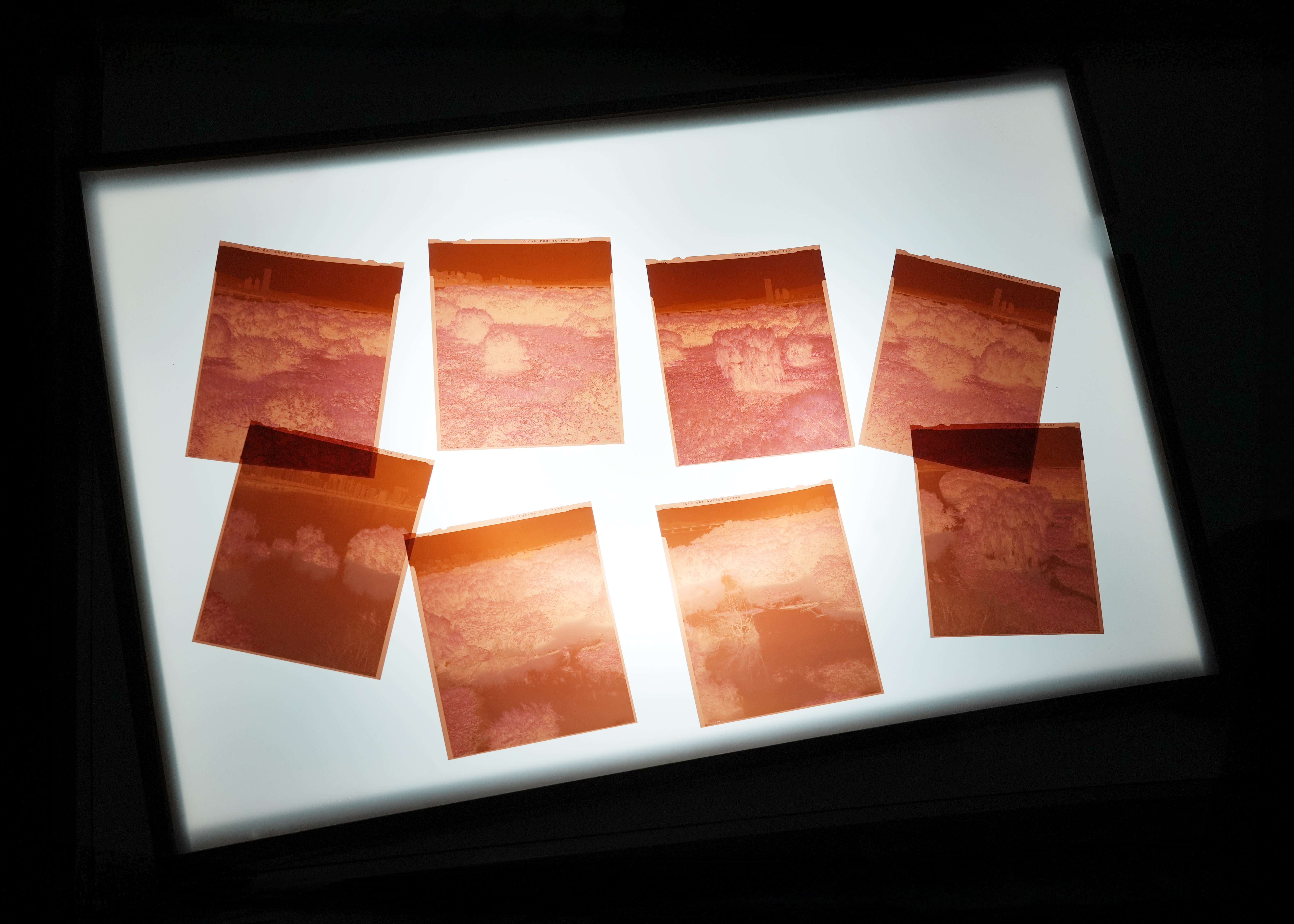 그래서 저희가 오늘 함께 슬라이드와 네거티브 필름을 들여다 봤군요. 출판물로 구현된 <Missing Link>를 작가님과 함께 넘기며 들여다 본 일 역시 그렇고요. 작가님의 작업과 프린트를 살펴보면 표면이 열화되어 있거나, 스크래치가 발생해 있거나, 먼지나 벌레가 돌아다니는 비문증의 장면처럼 느껴질 때가 많아요. 이렇게 사진을 가공하는 이유도 있을까요?