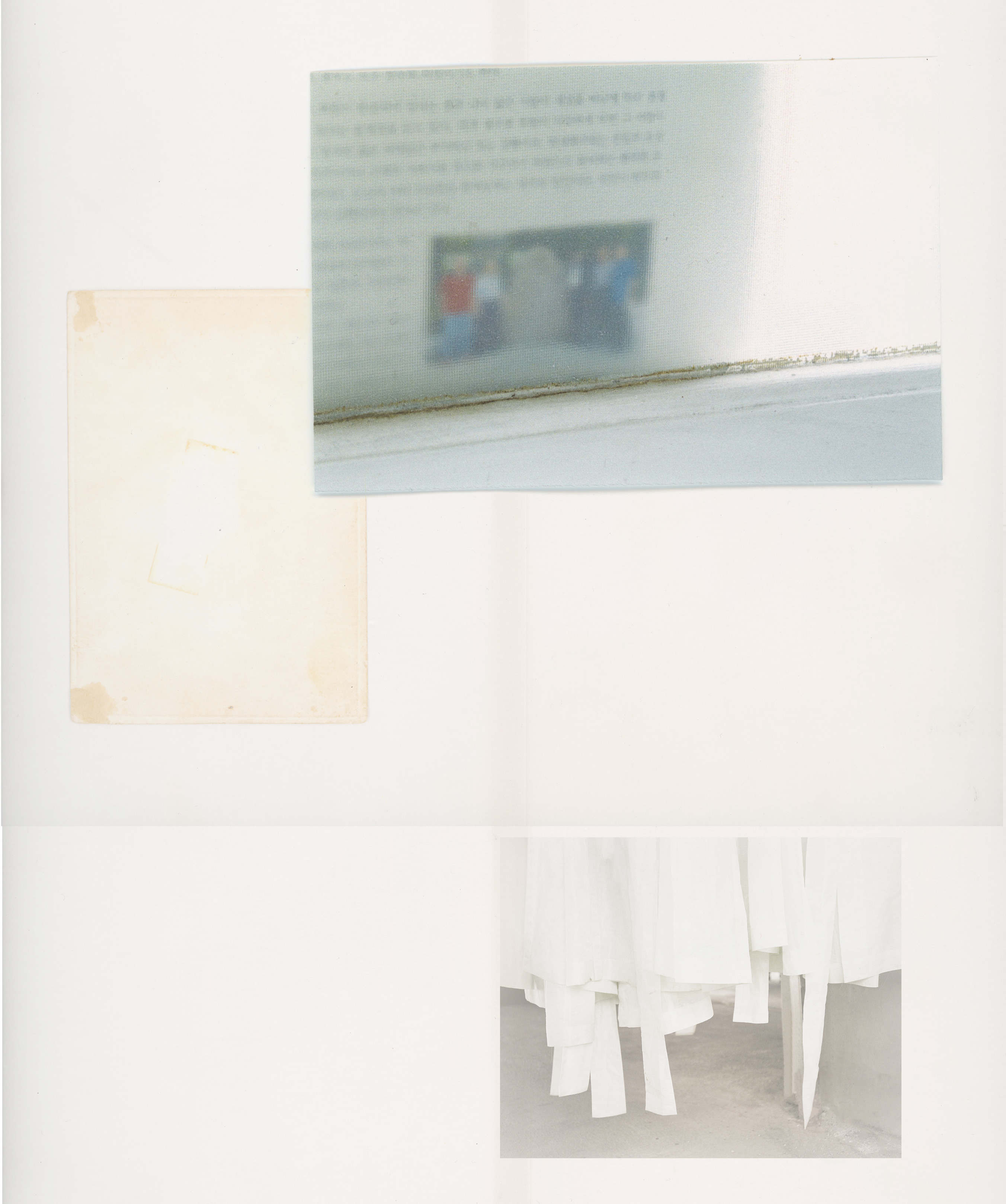 <Missing Link> 책의 디자인 작업을 함께 해준 친구들과 종이로 구현되는 것을 굉장히 많이 고민했어요. 전시장에서 꼭 책의 형태 안에 사진이 담기기 바라는 저의 요구가 있었어요. 영상이 함께 상영되는 전시장은 어둡기 마련인데, 이 환경 속에서 한 장 한 장 사진집을 넘겨보는 일 자체가 할머니 할아버지의 젊은 사진 앨범을 넘기는 감각과 유사하면 좋겠다고 생각했거든요. 이 고민 때문에 손 끝의 감각으로 다가오는 종이의 질감을 예민하게 다뤘어요. 아주 가벼운 종이나, 사진용지가 아닌 종이를 사용해 보기도 하고. 한지나 매뉴얼지에 테스트 인쇄를 하는 실험을 하며 눈을 감고서도 한 장 한 장 넘겨볼 때에 손 끝의 감각들이 연결되도록 하자는 내부적인 목표가 있었어요.