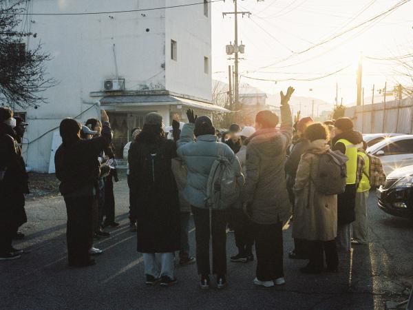 내가 쓰려는 것은 2024년 12월 3일의 윤석열 계엄 선포 이후 진행되고 있는 범국민촛불대행진의 날에 촬영된 사진들이다. 여러 대의 일회용 필름카메라를 페미당당 심미섭과 그의 친구들, 투명가방끈 활동가 연혜원, 청소년성/노동연대 부라자 활동가 강모래, 지뢰계 김미카, 익명의 샤이니 팬, 시인 박규현, 엄마 전다정에게 보냈고 그들에게 집회 순간을 촬영할 것을 요청했다.